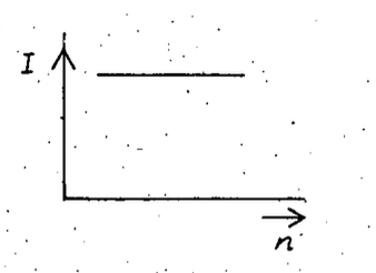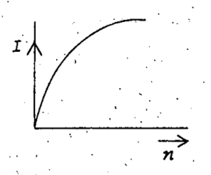 Q. A battery consists of a variable number of identical cells, each having an internal resistance connected in series. The terminals of the battery are short-circuited. A graph of current in the circuit verses the number of cells will be as shown in figure.