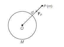 A point mass m is placed outside a hollow spherical shell of mass M and uniform density at a distance d from centre of the sphere as shown in figure. Gravitational force on point mass m at P is
