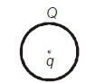 A thin, metallic spherical shell contains a charge Q on it. A point charge q is placed at the centre of the shell and another charge is placed outside it as shown in figure. All the three charges are positive . The force on the charge at the centre is