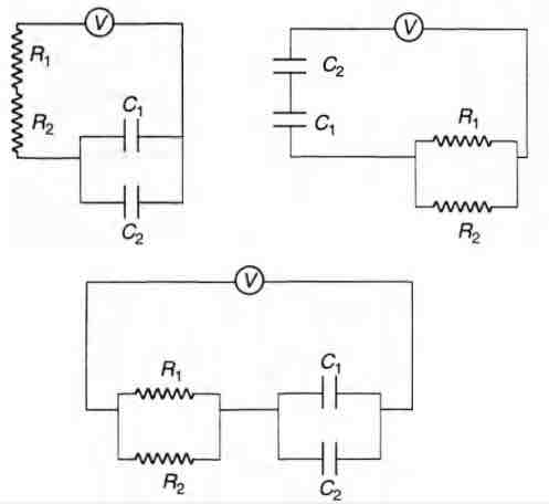 Q. Find the time constant for the given RC circuits in correct order (in
