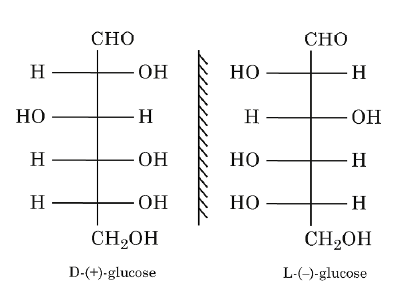 D and L before the name of any compound commonly indicates the relative configuration. For assigning the configuration of monosaccharides it is the lowest asymmetric carbon atom, which is compared to glyceraldehyde. For glucose, if —OH on the lowest asymmetric carbon is on the right side. Then, it is assigned D-configuration and if OH is on the left side then it is assigned L-configuration. Both D and L configuration are mirror images of each other.