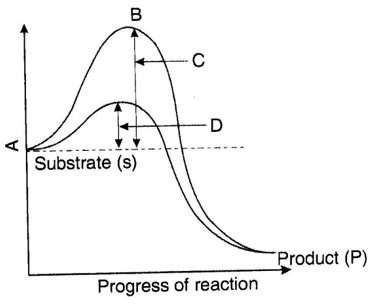 | D | Potential energy | Transitian state | Activation energy without enzyme | Activation energy with enzyme |