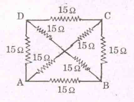 Q. The equivalent resistance between the points and will be (each resistance is 15 ) Physics Question Image