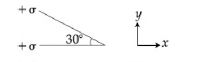 Two infinite planes each with uniform surface charge density are kept in such a way that the angle between them is . The electric field in the region shown between them is given by :