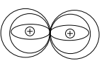 Q. Which of the following figure shows the correct equipotential surfaces of a system of two positive charges?